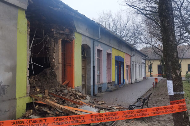 Épületomlás Ada 2025: lezárták a járdát a gyalogosok előtt
