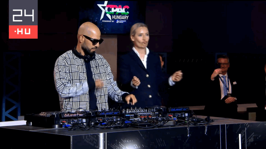 Alice Weidel, a német szélsőjobboldali AfD társelnöke szombaton a budapesti CPAC Hungary rendezvényen nemcsak politikai beszédet mondott, hanem a színpadra lépés előtt a perzsa származású Lotfi Begi dj mellett táncolt. A műsorvezető Bohár Dániel szerint Weidel kedvenc techno zenéje kíséretében érkezett Budapestre, maga az AfD politikusa pedig így kezdte beszédét: „Jó napot! Azután, hogy ezt a nagyon szép DJ-szettet hallgathattuk, hallgathatunk egy nagyon szép patrióta beszédet is ma.”