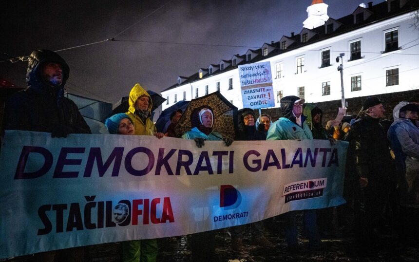 Pozsonyban több százan gyűltek össze kedden délután a Szlovák Nemzeti Tanács (NR SR) épülete előtt, hogy tiltakozzanak a kormány tervei ellen, miszerint megszüntetné a korrupciós ügyeket vizsgáló Bejelentővédelmi Hivatalt. A demonstrálók között civil aktivisták, ellenzéki politikusok és állampolgárok egyaránt megjelentek, akik szerint a hivatal felszámolása súlyos visszalépést jelentene a korrupcióellenes küzdelemben.